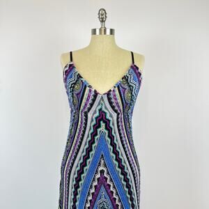 Vintage Y2K Cache Knit Multicolored Maxi Festival Boho Summer Sundress Dress (M)