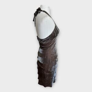 Vintage Y2K Cache Metallic Halter Mini Dress Womens size 6 Bodycon Glam Cocktail
