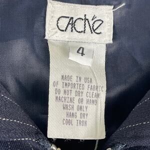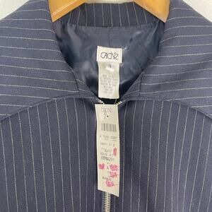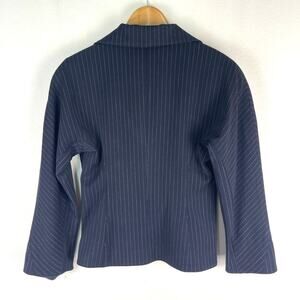 Vintage Y2K Cache Navy Pinstripe Zipper Stretchy Jacket Pointed Collar Women's 4
