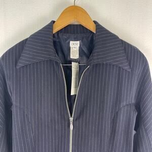 Vintage Y2K Caché Navy Pinstripe Zipper Stretchy Jacket Pointed Collar