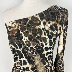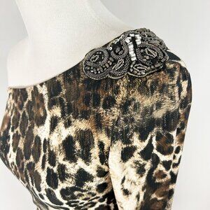 Vintage Y2K Cache One Shoulder Dress Animal Print Beaded Boho Size Small Women's