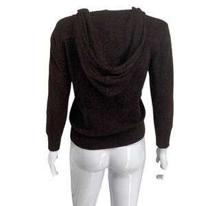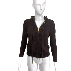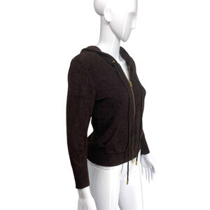 Vintage Y2K Cache Sz S Brown Boucle Knit Hoodie Hooded Sweater Pockets Gold Trim