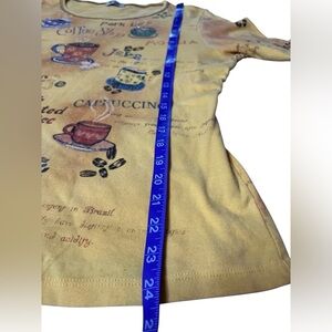 Keywords/Tags: vintage coffee shirt, Y2K graphic top, café latte espresso print, kitschy retro tee, coffee lover gift, fall cozy shirt, cottagecore kitchen aesthetic.
