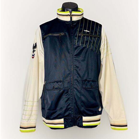 Vintage Y2K Caffeine Track Jacket Mens Medium Navy White Zip Raven Motorcycle