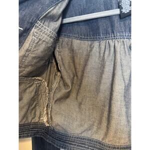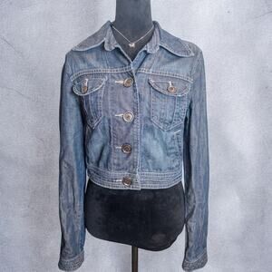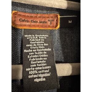 Great gently used condition. Classic early 2000s Calvin Klein Jeans shrunken denim jacket in a medium wash with contrast stitching and signature flap chest pockets. Cropped fit with a structured silhouette.