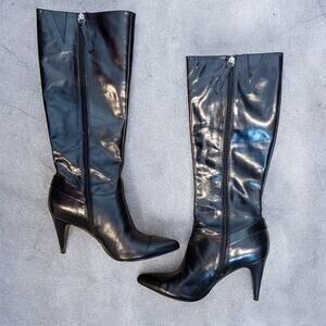 Vintage Y2K Calvin Klein Liv Black Leather Knee Length Heel Boots Women’s 7.5