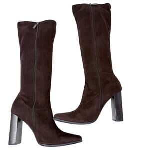 Vintage Y2K Candie’s Brown Faux Suede Knee High Boots Women's Size 10 Side Zip