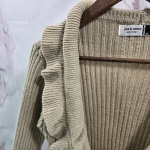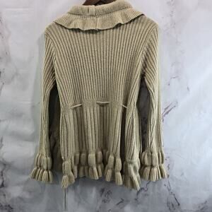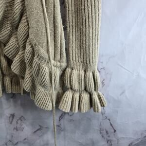 Vintage Y2K Cardigan Womens Medium Beige Flare Sleeve Rufffle Neutral Boho
