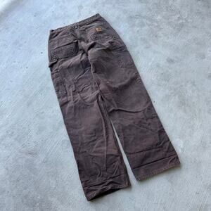 Vintage Y2K Carhartt DKB brown double knee work wear carpenter pants. Measures 28x31.5 and an 9 inch leg opening. Please check measurements before purchasing. I do my best to show any flaws in pictures. Quick shipping! Bundles encouraged!