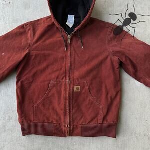 Vintage Y2K Carhartt J130 CLY red hooded work wear jacket