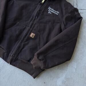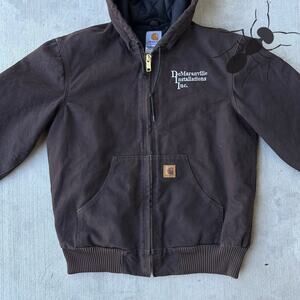 Vintage Y2K Carhartt J130 DKB brown hooded work wear jacket. Has embroidery. Measures 23x27.5. Please check measurements before purchasing. I do my best to show any flaws in pictures. Quick shipping! Bundles encouraged!