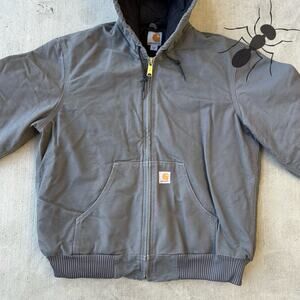 Vintage Y2K Carhartt J140 GVL gray hooded work wear jacket