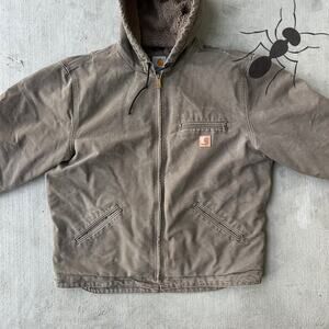 Vintage Y2K Carhartt J141 LBR brown Sierra work wear jacket. Nice one! Sherpa lining. Fade markings throughout. Measures 26.5x28. Please check measurements before purchasing. I do my best to show any flaws in pictures. Quick shipping! Bundles encouraged!