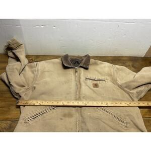 The Vintage Y2K Carhartt J97 CML Detroit Canvas Work Jacket XL Distressed is a stylish and durable bomber jacket designed for men who appreciate quality and style. Made of cotton canvas with a distressed brown color, this jacket is perfect for workwear occasions and adds a touch of rugged sophistication to any outfit. The XL size ensures a comfortable fit, while the Carhartt brand and classic design make it a timeless piece that can be worn for years to come.pre owned distressed condition we ship fast measurements are in the pictures