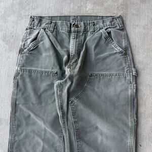 Vintage Y2K Carhartt MOS green double knee work wear carpenter pants. Measures 32x28 and a 9 inch leg opening. Please check measurements before purchasing. I do my best to show any flaws in pictures. Quick shipping! Bundles encouraged!