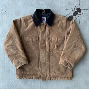 Vintage Y2K Carhartt YOUTH YC26 brown chore work wear jacket. Measures 19x22. Please check measurements before purchasing. I do my best to show any flaws in pictures. Quick shipping! Bundles encouraged!