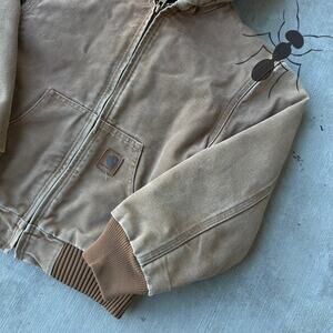 Vintage Y2K Carhartt YOUTH brown hooded work wear jacket. Nice one! Light fading. Youth size - Measures 18x20. Please check measurements before purchasing. I do my best to show any flaws in pictures. Quick shipping! Bundles encouraged!