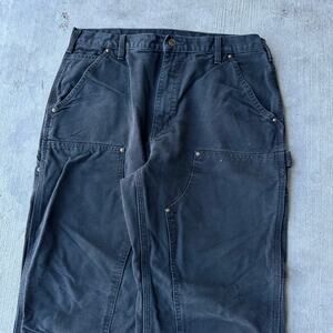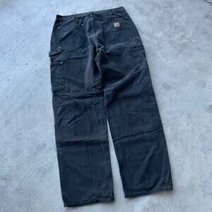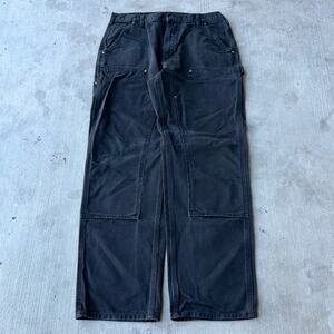 Vintage Y2K Carhartt black double knee work wear carpenter pants. Nice little fade on these! Measures 34x32 and a 9 inch leg opening. Please check measurements before purchasing. I do my best to show any flaws in pictures. Quick shipping! Bundles encouraged!