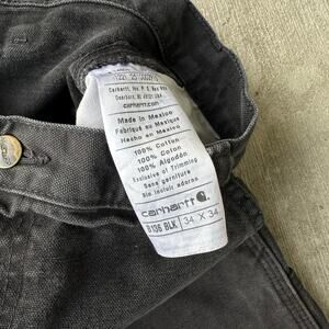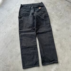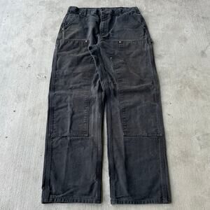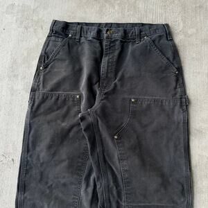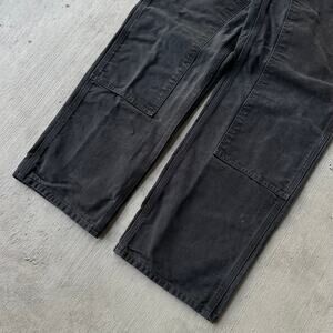 Vintage Y2K Carhartt black double knee work wear carpenter pants. Nice pair! Slight fading throughout. Few minor flaws. Measures 34x33 and a 9.5 inch leg opening. Please check measurements before purchasing. I do my best to show any flaws in pictures. Quick shipping! Bundles encouraged!