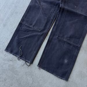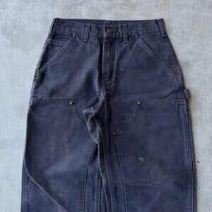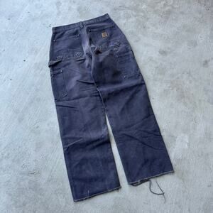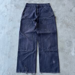 Vintage Y2K Carhartt black double knee work wear carpenter pants. Good fade on these! Few stains throughout. Legs cut shorter. Measure 28x28 and an 8.75 inch leg opening. Please check measurements before purchasing. I do my best to show any flaws in pictures. Quick shipping! Bundles encouraged!