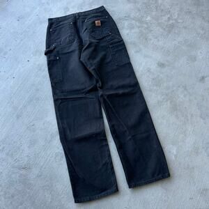 Vintage Y2K Carhartt black double knee work wear carpenter pants. Small pinhole on knee. Measure 30x33.5 and an 8.75 inch leg opening. Please check measurements before purchasing. I do my best to show any flaws in pictures. Quick shipping! Bundles encouraged!