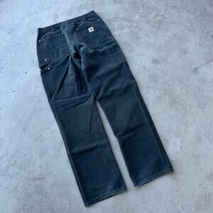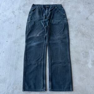 Vintage Y2K Carhartt black double knee work wear carpenter pants. Slight fade to knees. Few small stains and pin holes throughout. Measure 32x33 and an 9 inch leg opening. Please check measurements before purchasing. I do my best to show any flaws in pictures. Quick shipping! Bundles encouraged!