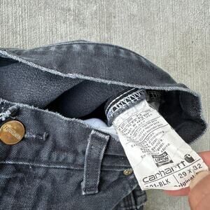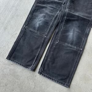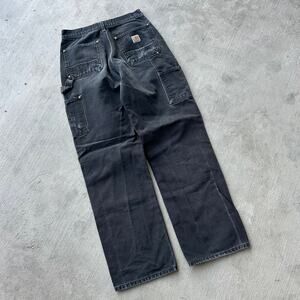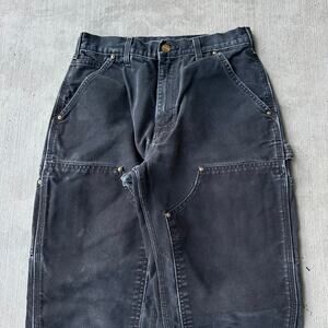 Vintage Y2K Carhartt black double knee work wear carpenter pants. Nice fade on these! Few tears throughout. Tears and fraying to crotch. Measure 29x30.5 and an 8.5 inch leg opening. Please check measurements before purchasing. I do my best to show any flaws in pictures. Quick shipping! Bundles encouraged!