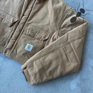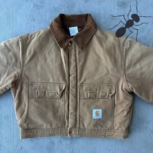 Vintage Y2K Carhartt brown cropped Detroit style work wear jacket. Measures 22.5x20. CUT FROM COVERALLS SO THE ZIPPER DOES NOT WORK!!! Please check measurements before purchasing. I do my best to show any flaws in pictures. Quick shipping! Bundles encouraged!