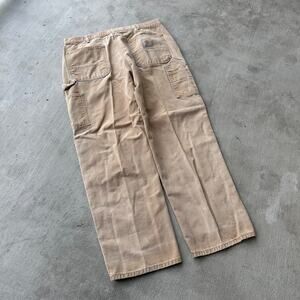 Vintage Y2K Carhartt brown double knee work wear carpenter pants. Great fade! Staining on knees. Measures 35x30 and a 9.25 inch leg opening. Please check measurements before purchasing. I do my best to show any flaws in pictures. Quick shipping! Bundles encouraged!