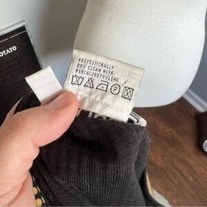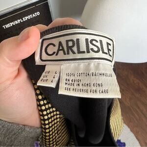Y2K Carlisle; tagged a size L - this is vintage sizing, please see measurements for best fit as listed size is approximate; rubber raised textured; cotton/Baumewolle; dry clean; good vintage condition - small flaws to dots on right shoulder area