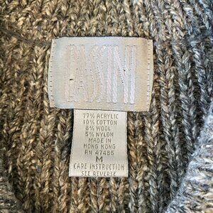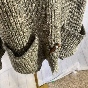 Vintage Y2K Cassini Medium Gray Wool Blend Chunky Knit Cardigan Sweater Coat with Toggle Clasp