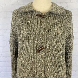 Vintage Y2K Cassini Wool Blend M Grey Chunky Knit Toggle Clasp Long Cardigan