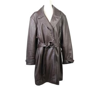 Vintage Y2K Centigrade Dark Brown Genuine Leather Trench Coat Jacket Womens 2X