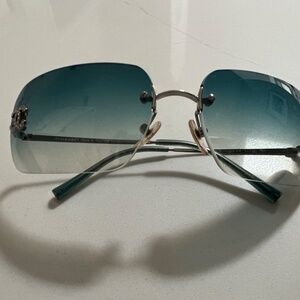 Vintage Y2K Chanel Sunglasses Rhinestone Crystal CC Logo Rimless Gradient Blue