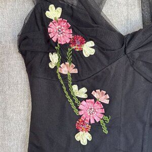 Vintage Y2K Charlotte Russe Black Tulle Satin Floral Applique Off Shoulder Top Size Medium