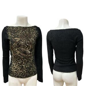Vintage Y2K Charlotte Russe Sparkle Leopard Print Long Sleeve Sweater / XS -