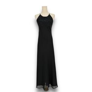 Vintage Y2K Chelsea Nites Mesh Maxi Dress Beaded Sleeveless Slip Evening Gown 10