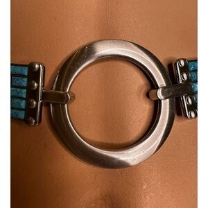 Excellent condition. Silver tone hardware with turquoise tone accents. Brown genuine leather.