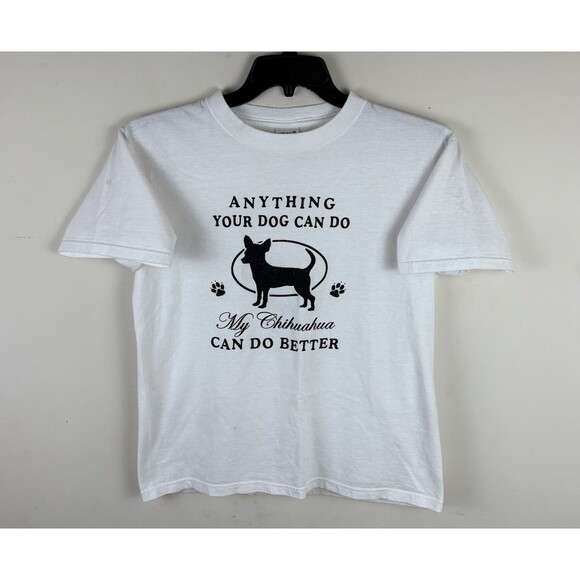 Vintage Y2K Chihuahua Graphic Humor T-Shirt / White / Size Medium. This shirt is in fantastic condition! No rips or holes anywhere throughout! There is some staining throughout visible in the pictures. The condition is fully shown in the pictures so you can judge it.