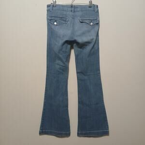 These Vintage Y2K Chiqle Wide Leg Denim Jeans are perfect for those who love the boho and trendy style from the early 2000s. Made from 100% cotton denim, these size 9 jeans feature a solid blue color with a medium fabric wash. The wide-leg fit and low rise make them comfortable and on-trend, while the zipper and button closure adds a classic touch. Perfect for personalizing with your favorite accessories, these jeans are machine washable for easy care. Pair them with your favorite top and sandals for a retro-inspired look.