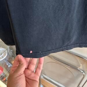 graphic tee, distressed, oversized fit, Y2K style, hip hop, vintage band, black shirt, casual wear, retro, concert tee