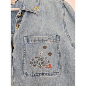 Vintage Y2K Christopher & Banks Chambray Kitty Cat Women's Medium Button Up