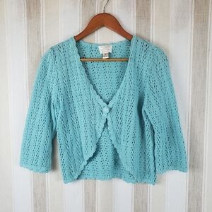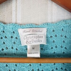 Vintage Y2K Christopher Banks Hand Crochet Sweater Cardigan Blue Size Medium