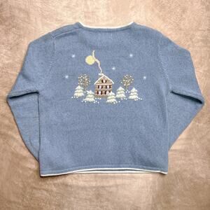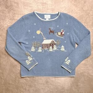 Vintage Y2K Christopher & Banks Winter Cabin Santa Embroidered Sweater