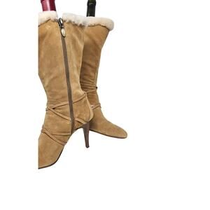Vintage Y2K Circa Joan David 8.5 Brown Leather Faux Shearling Heel Boot Boho