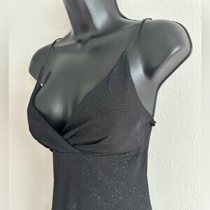 Vintage Y2K Little Black Dress – City Triangles, Glitter Sheen, High-Low Hem, Spaghetti Strap, Size M