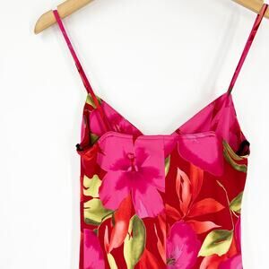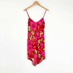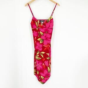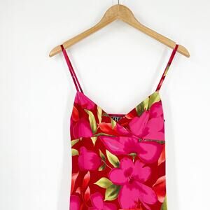 Vintage Y2K City Triangles Floral Slip Dress Pink Hibiscus Size Medium