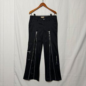 Vintage Y2K Clash Black Mid Rise Cargo Silver Zipper Hardware Flare Leg Pants