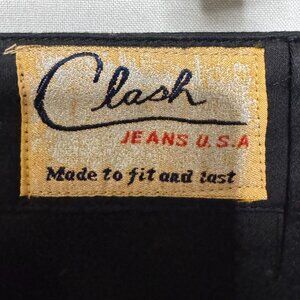 These Vintage Y2K Pants from Clash Jeans USA and Made in Russia and constructed in 96% Cotton, 4% Lycra black stretch fabric, mid rise, button zipper fly closure, 2 front slant pockets, 2 back pockets with silver grommets/right side zipper closure/left side D ring, back decorative right thigh side flap, 2 silver tone metal zipper cargo pockets w/ grommets, middle front crease silver tone metal zipper with D rings at the top and a straight or flare leg silhouette. These are punk, goth, japanese streetwear, indie sleeze vibes.