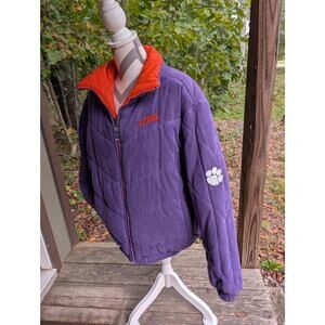 Vintage Y2K Clemson Puffer Reversible Jacket Mens M Orange Purple NCAA Football